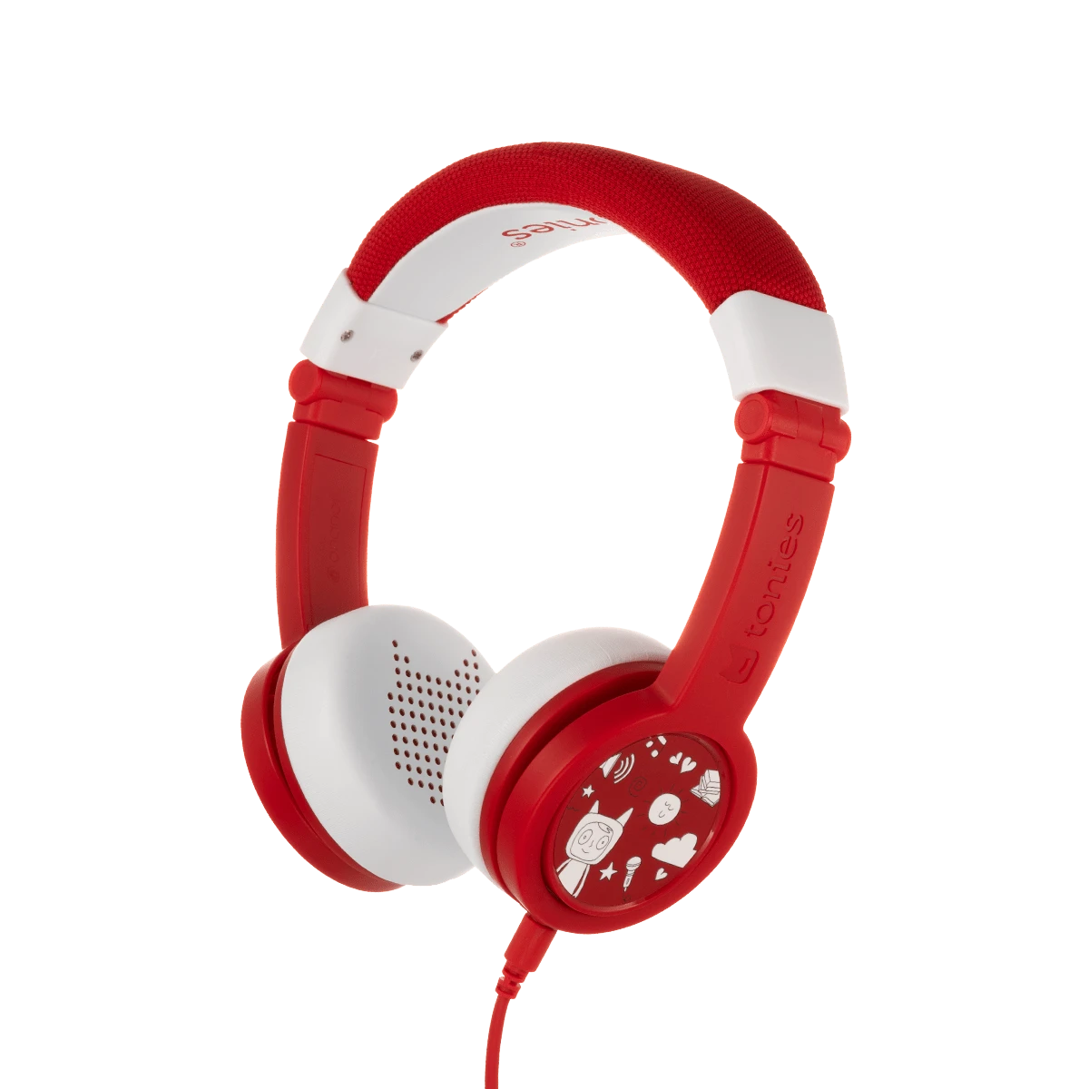 Meet the toniesยฎ Headphones! These foldable, durable, kid-safe, volume-limiting headphones come in six colors to match your Toniebox. Each headphone set includes a matching sticker set and a detachable audio cable with a BuddyJack splitter for sharing storytime with up to four sets of headphones from a single Toniebox.
